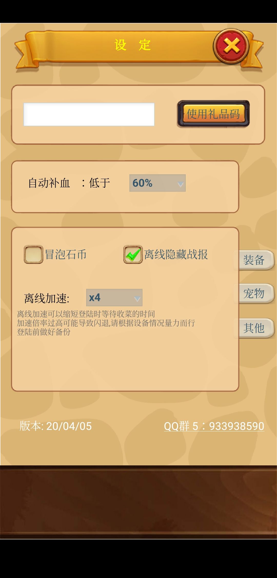在线获得的石币是否显示/离线战斗信息,上线时是否显示/离线后再次上线后的战斗显示速度(根据自己手机配置调整)