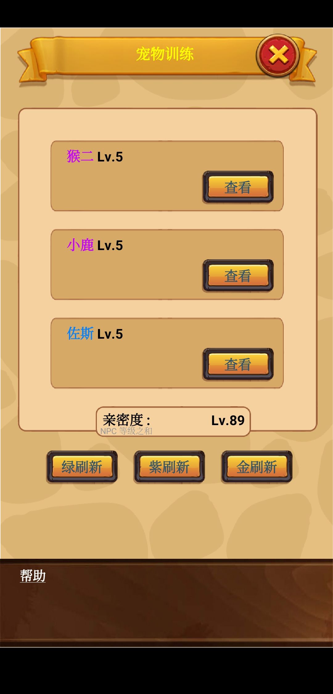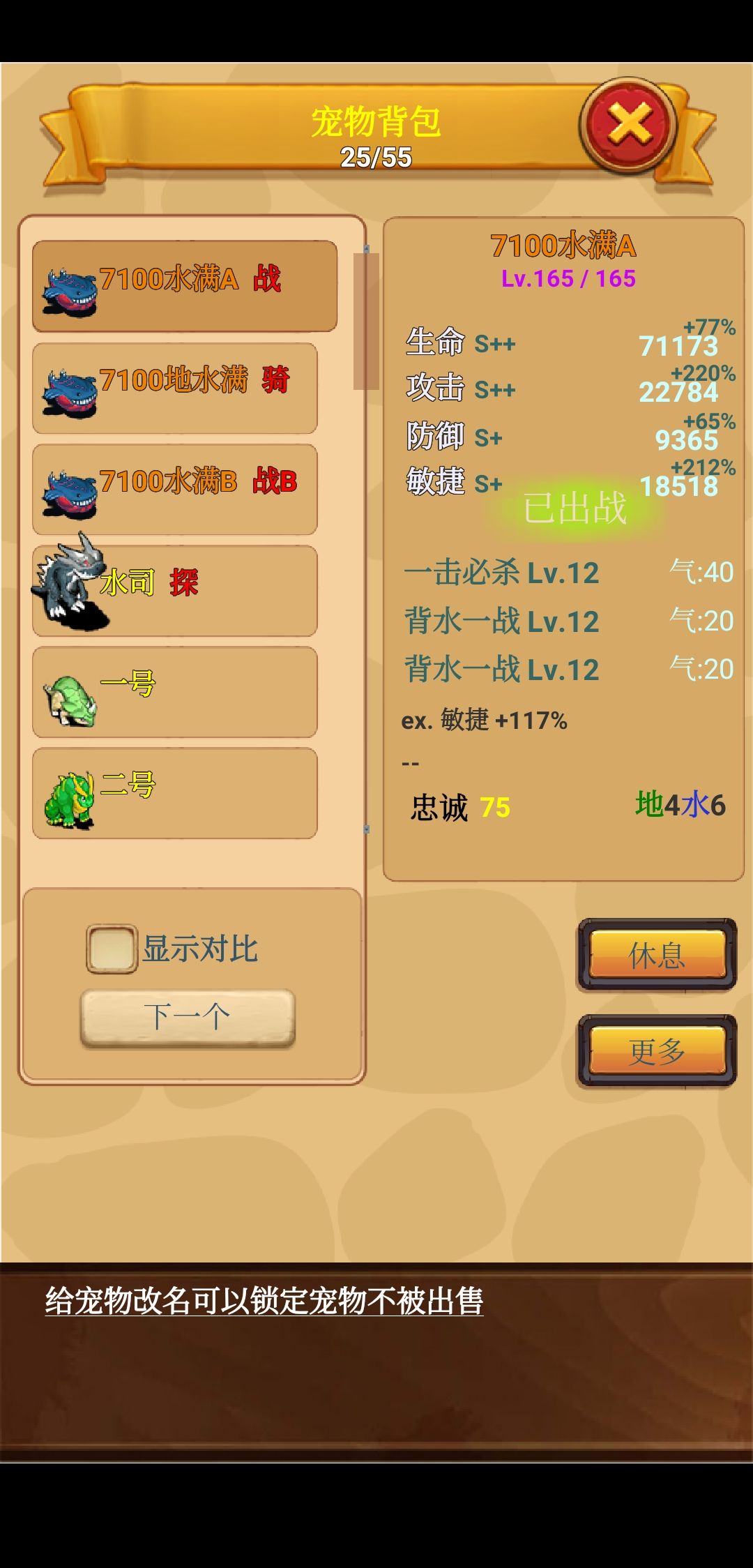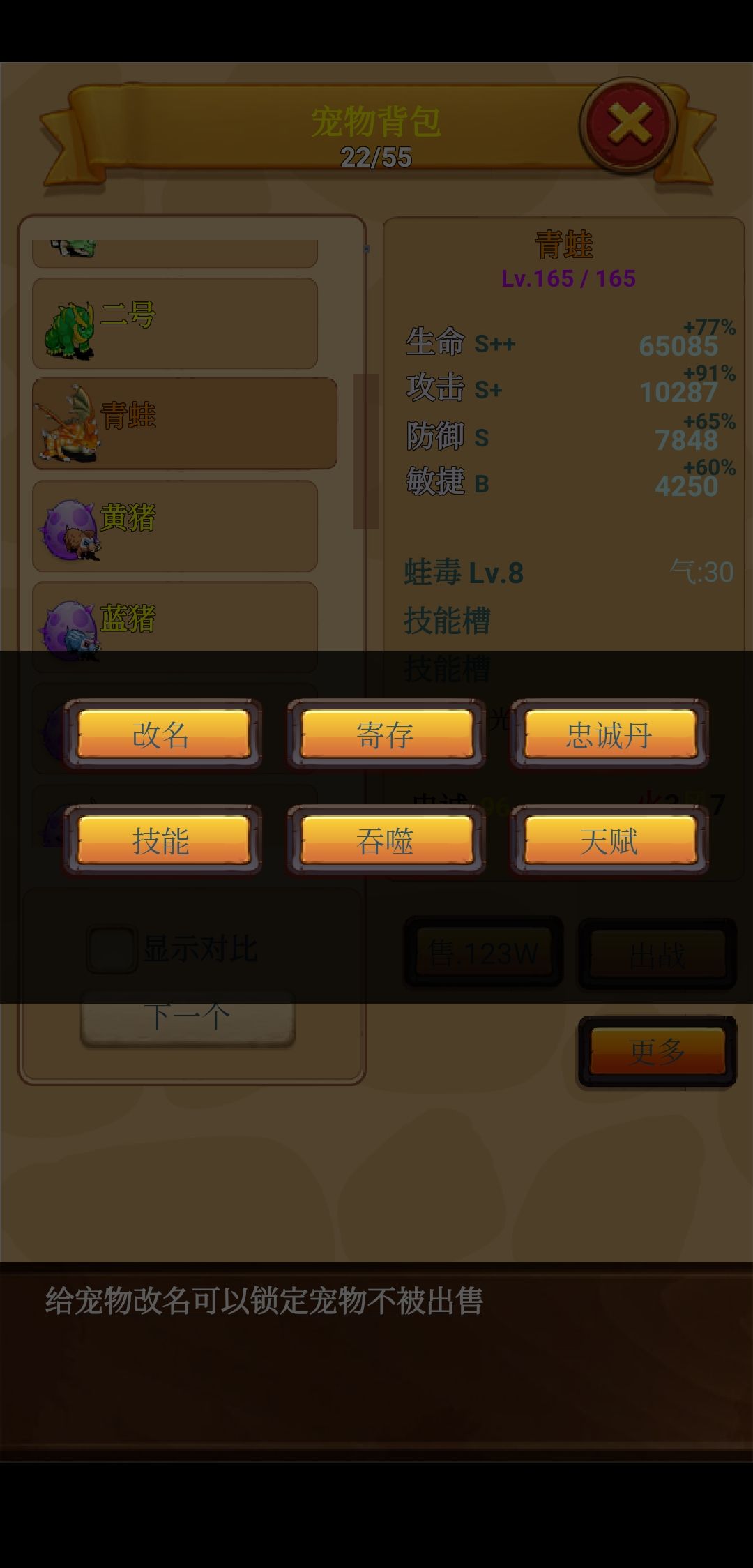 改名字,寄存,忠诚丹(忠诚度等于0宠物无法出战)