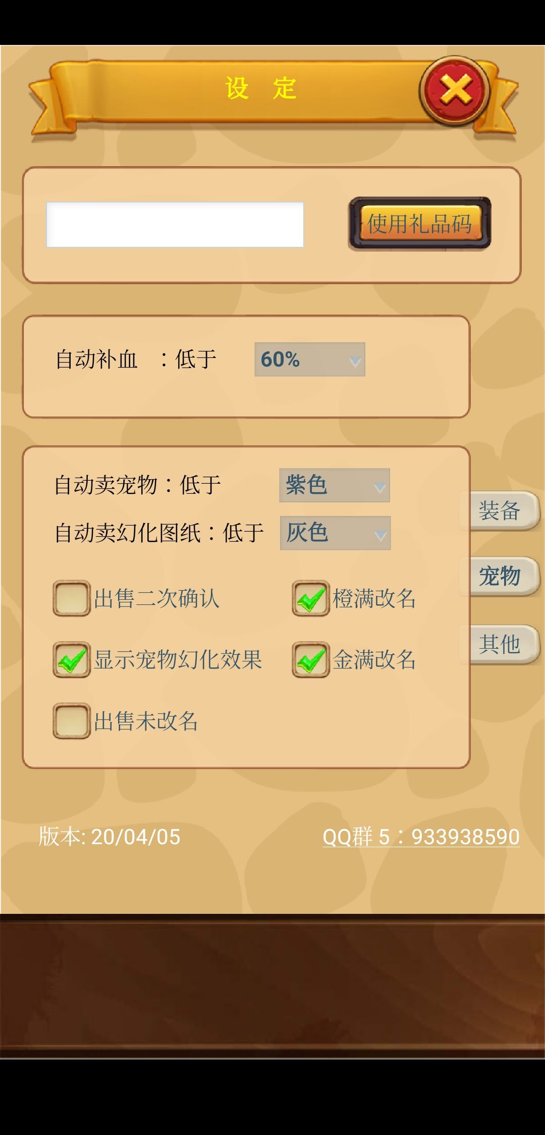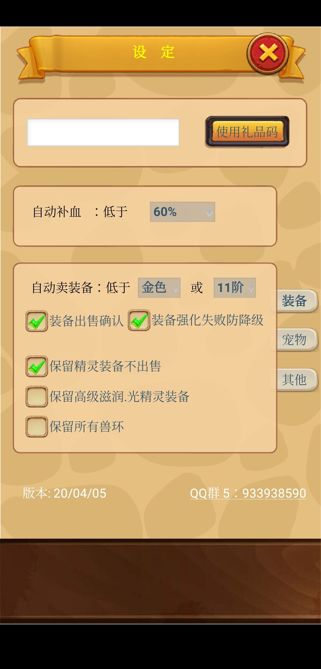 大家可以根据自身需要,设置保留装备颜色/阶数,回血量