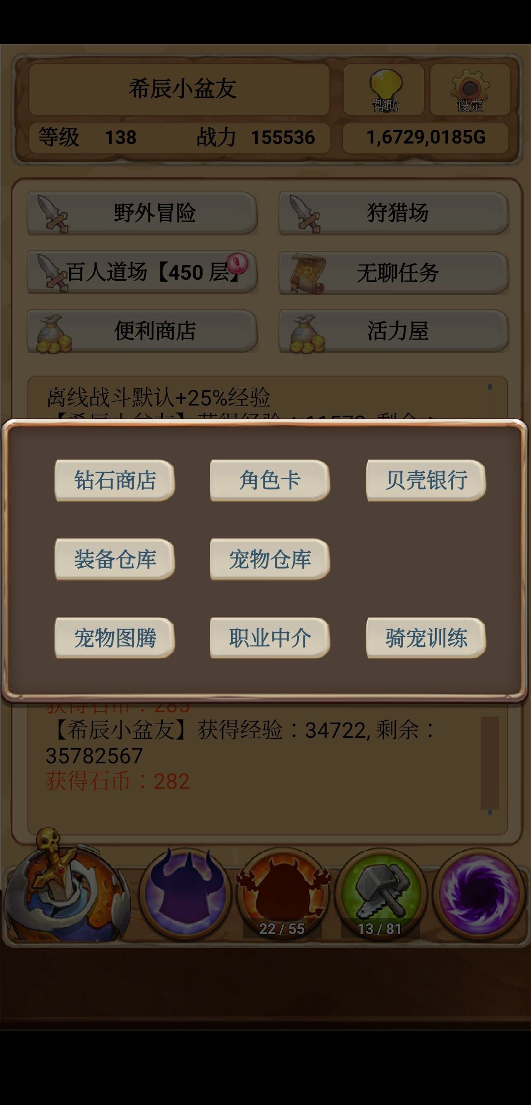 存放/更换装备的地方,可以出售不要的装备,强化装备等级,增强自身战斗力