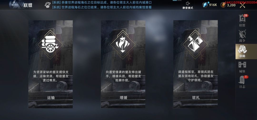 联盟还拥有为盟友运输资源、增援盟友抵御外敌、调遣军团驻扎盟友领地、盟友帮助进行建筑加速等互帮互助功能,领主们利用这些强大的功能,经常与盟友互通有无、共御外敌、一同加速各自领地的发展等,还可与盟友共同参与城堡争夺等战役,一同变强大的同时使联盟登上排行榜单,成就那片大陆的联盟传奇。