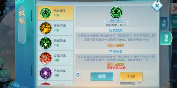 2.学习、升级招式需达到对应等级,并且消耗相应数值的顿悟值