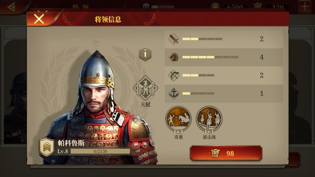 推荐原因:只要98勋章,天赋鼓舞士气永久保持上升,相当于自带黄金桂冠,优秀的骑兵将领。