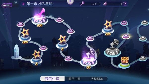 AU偶像的打造计划会从“生涯梦工厂”开始,一共有八个不同的成长章节,其中第一个章节是“初入星途”。在饱含汗水的造星计划中,劲舞新手将经历“异域的星辉”、“猫行前进”、“单身狗的伴唱”、“沸腾的夜空下”、“天才的代价”等考验剧情,一步步磨炼自己的意志、提高自己的技能,为日后成为闪耀巨星打下坚实的基础!