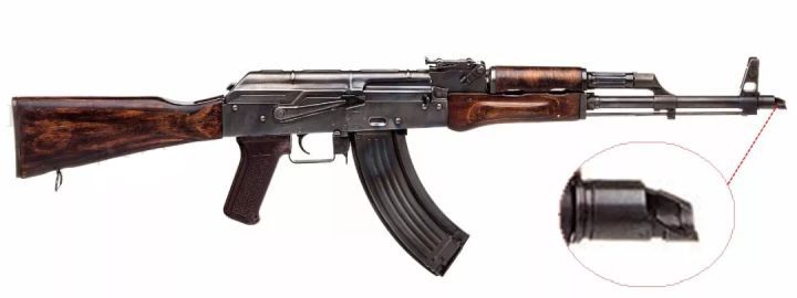 (AKM步枪。它的防跳器位于枪口,但并非所有AKM步枪都有防跳器)