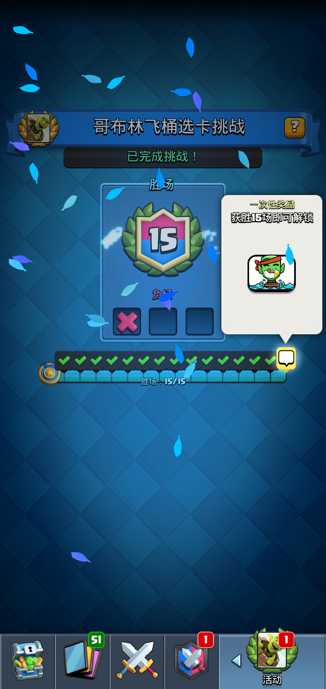 一次性15胜(没有续费),仅有一场选卡失误败北