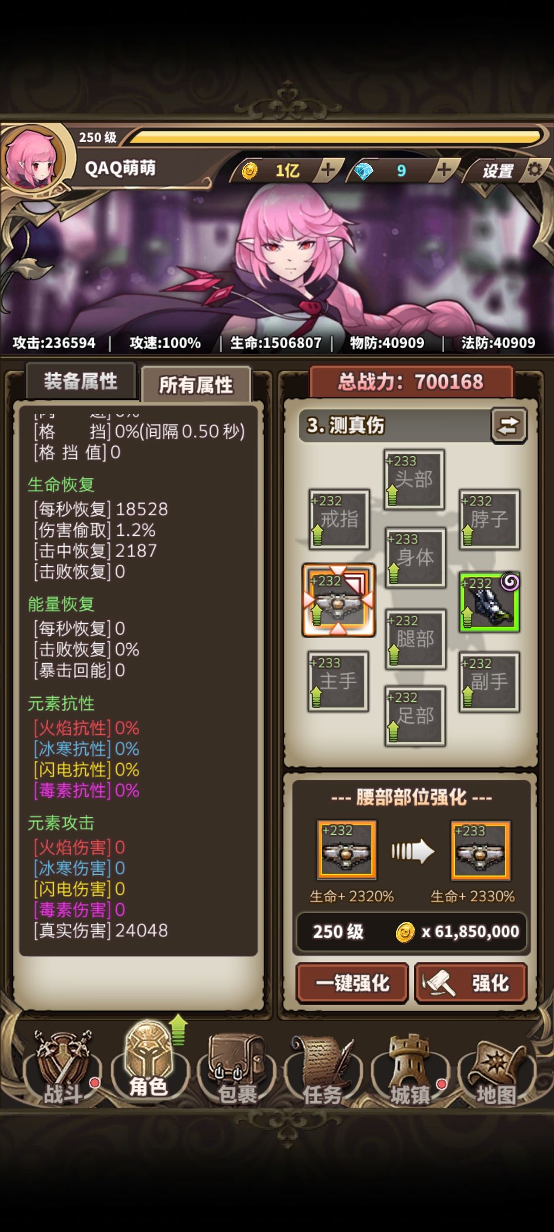 装备后,我们的攻击力面板是236594,真伤是24048