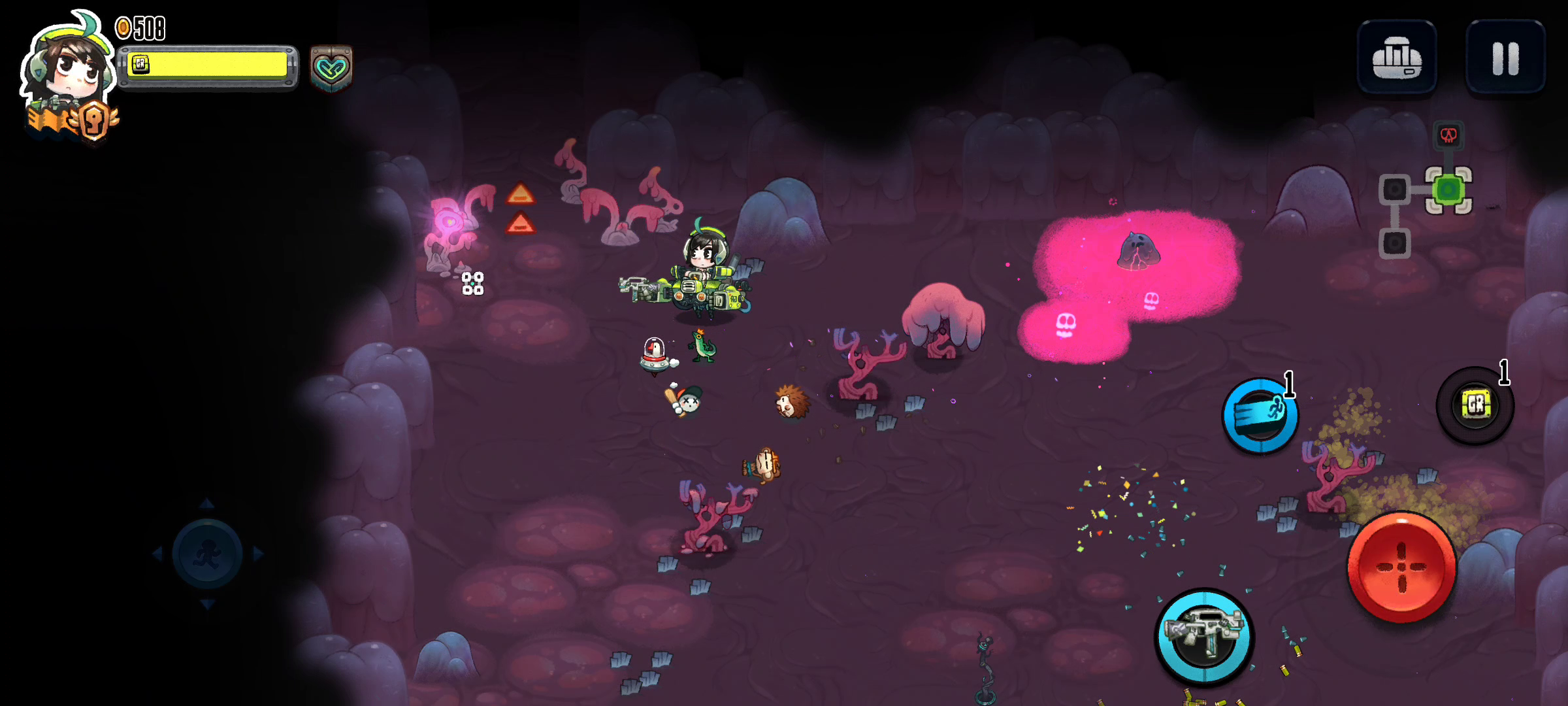 一个图形像方向盘是附加射击精准的(三级后,子弹自动追踪敌人)。