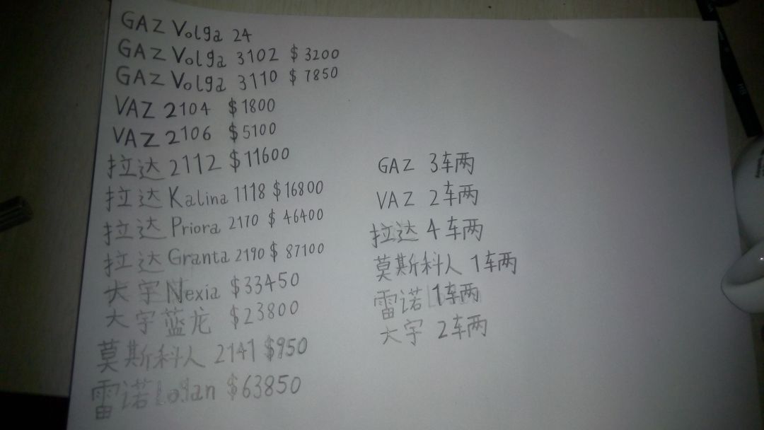 车辆价格表
