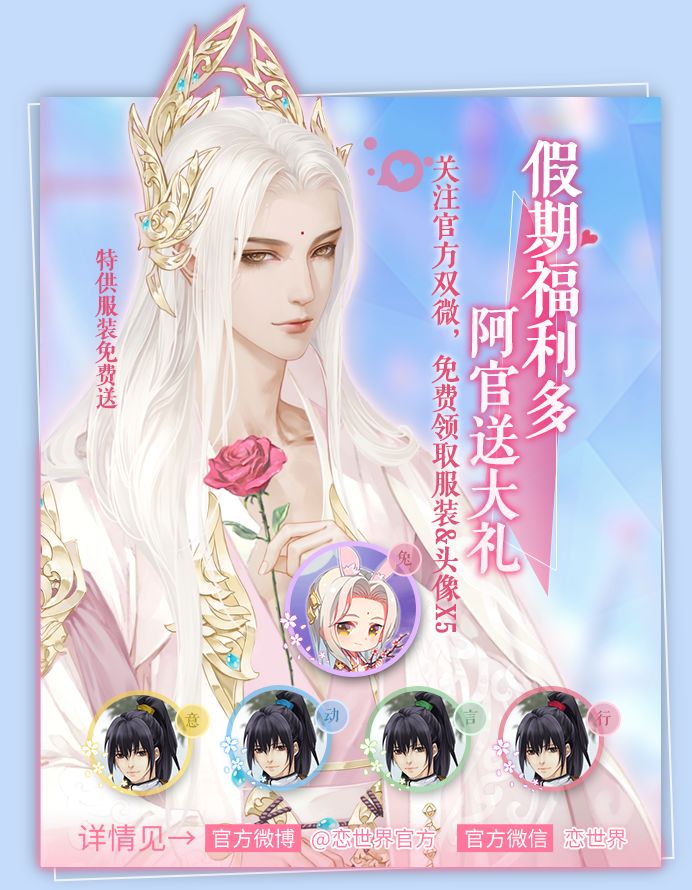 恋福利| 假期大回馈,好礼叠加送~乔扶服装、兔耳头像、四位帅气npc头像,统统免费送!