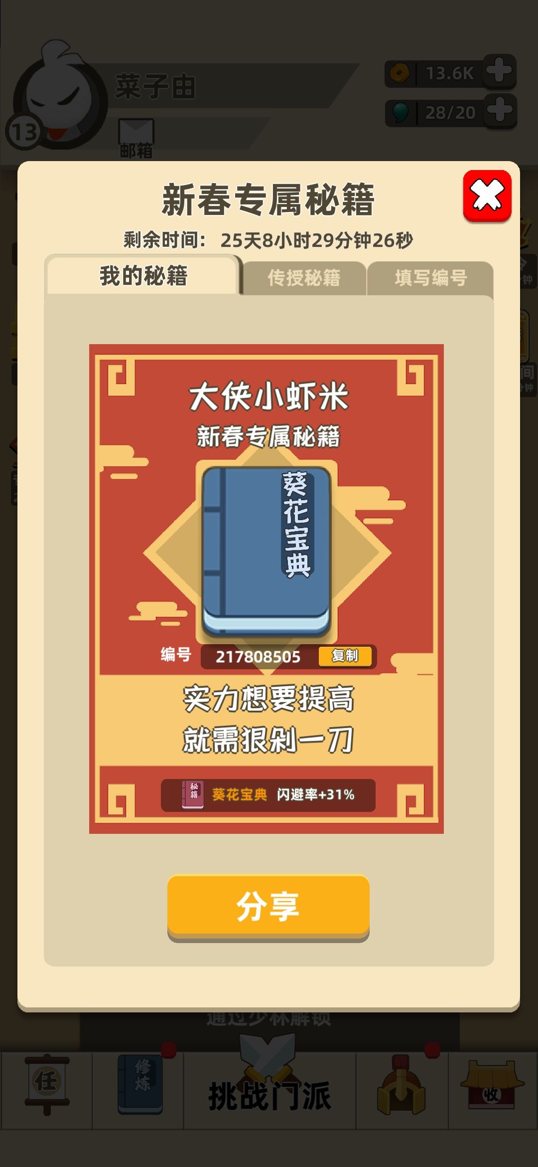 我有一本绝世武功要传授于你!来《我功夫特牛》,输入我的秘籍编号 【217808505】,一起称霸武林!