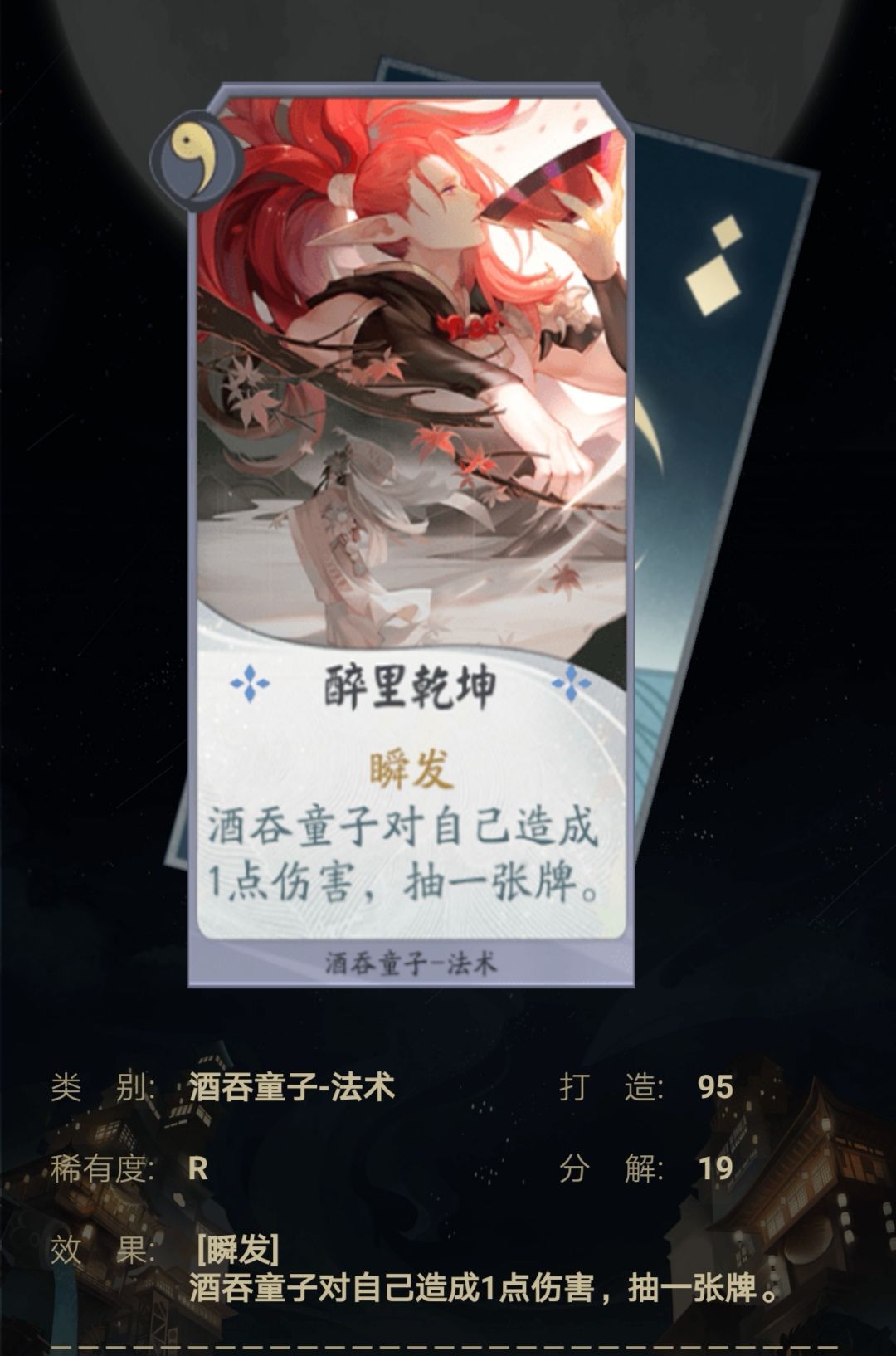 一张极强的前期过渡卡,过牌的同时还能触发酒吞的被动来进行加攻,且还有瞬发(不消耗行动力),是一张前期很强的过渡卡,能保证你中期基本不会被压制的卡牌。