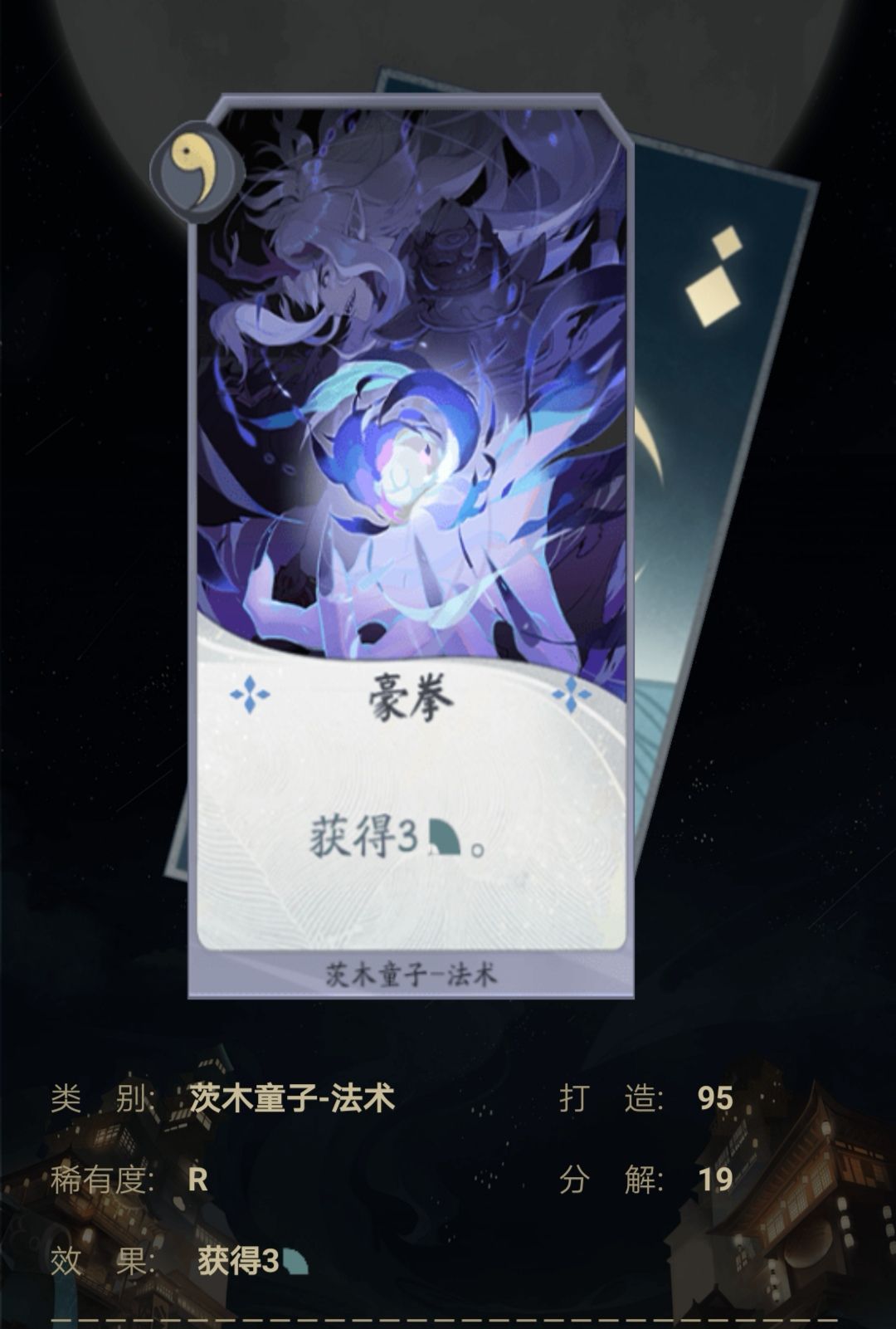 中期的主要输出手段,配合豪拳,可以进行疯狂的解场,通常一下子就能秒掉一个式神,甚至有时候可以给予敌人最后一击,通常能发挥意想不到的效果,是中后期的强力输出卡牌。