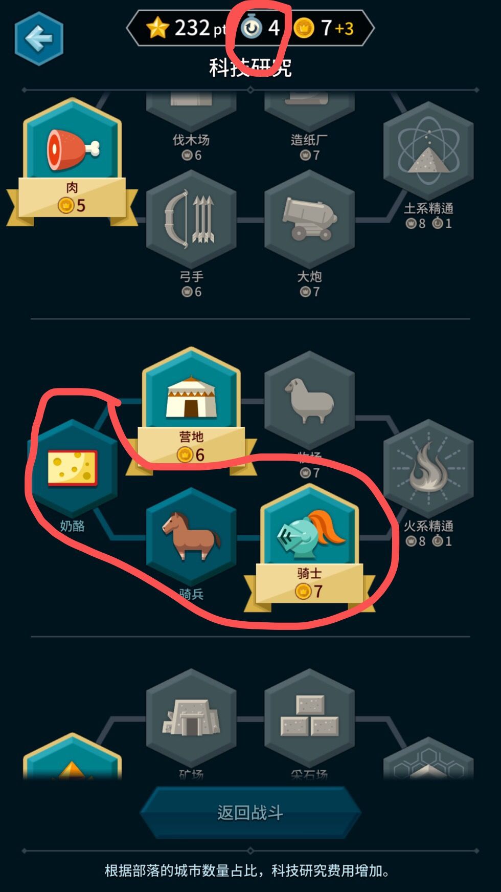 骑士科技之后看,可以升牧场补守卫也可以升移动提高机动性加快速推速度,一般建议自己所在的大陆敌人清理干净后再发展经济