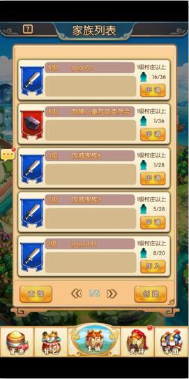 a、点击游戏主界面左下角家族图标打开家族列表界面,可以在家族列表界面选择自己想要加入的家族申请