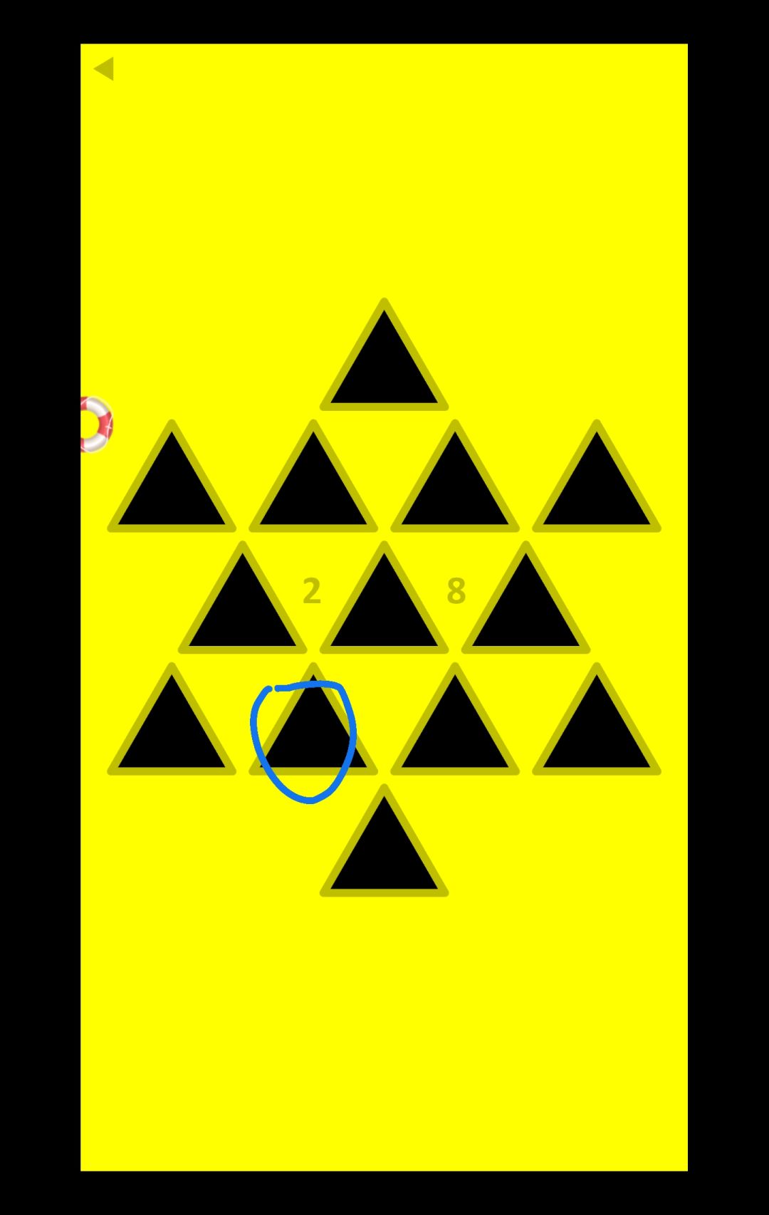 37先随便按一个黑色三角形,然后另一个黑色三角形会变成黄色,再按黄色三角形,接着再按另一个黑色三角形……以此类推