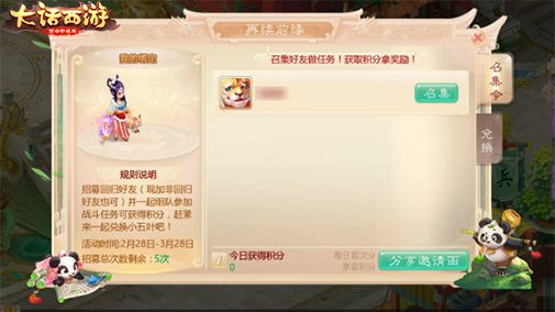 除了直接用春来积分进行兑换,大家也可以使用抽奖券抽取小五叶。玩家在活跃度达到150时就可获得抽奖券,春来积分也能兑换抽奖券,大家可以选择自己适合的方式,早些将可爱的熊猫兄妹领回家!