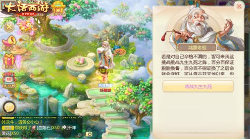 为了让回归大话的老玩家们能体验到更多专属特权,在活动期间老玩家专属的副本“九死九生”也限时同步开启。拥有进入副本资格的回归玩家,可以到蟠桃园菩提老祖处选择进入副本,担任队长并邀请一位非回归玩家作为助阵队友,2人组队即可共同挑战。副本战斗胜利后,队长将获得经验值奖励,若队员与队长之间有召集关系,则队长将获得好心值奖励。需要注意的是,活动期间专属副本只能进入一次,大家要抓住这个宝贵的机会哦!