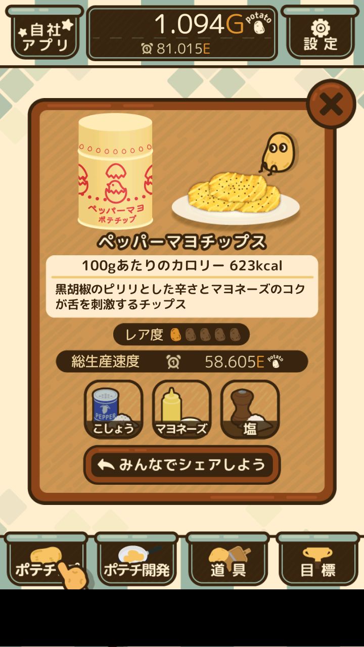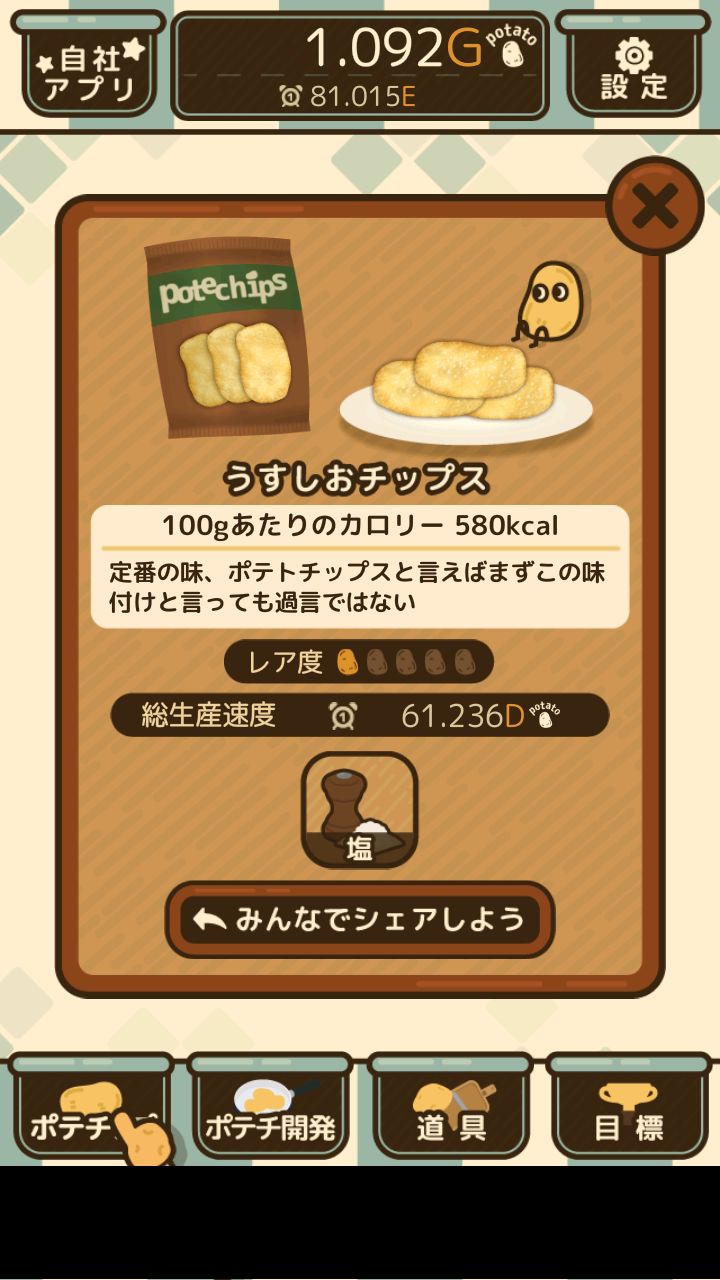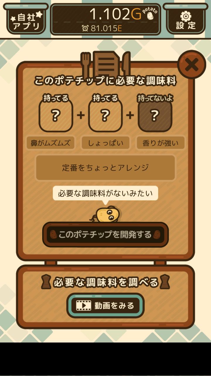 这里的每一个盘子图标都代表一种未研发的薯片。点击其中一个图标可得到下面的画面: