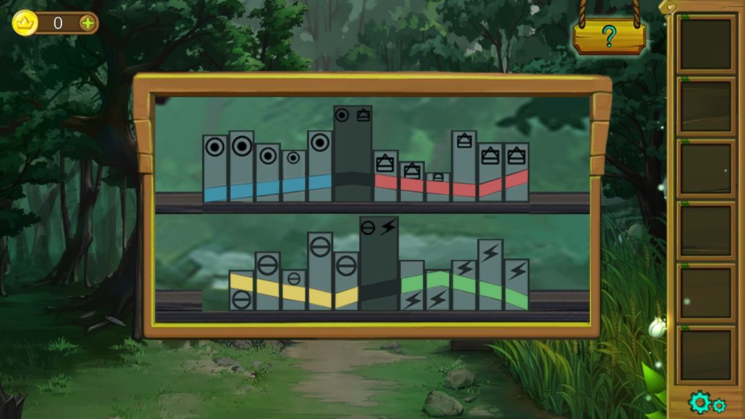 6.棚子下边有四个图形的游戏,从左下边开始,因为那里有一个空位,方便调整,分别把四个图形归类,线路连接,出现蓝红黄绿颜色。