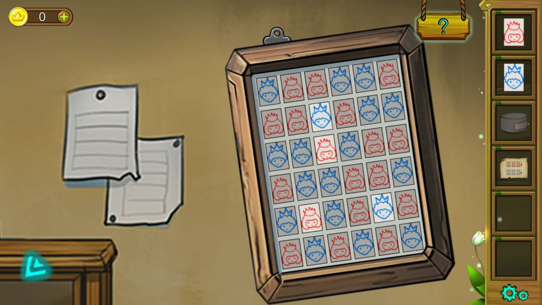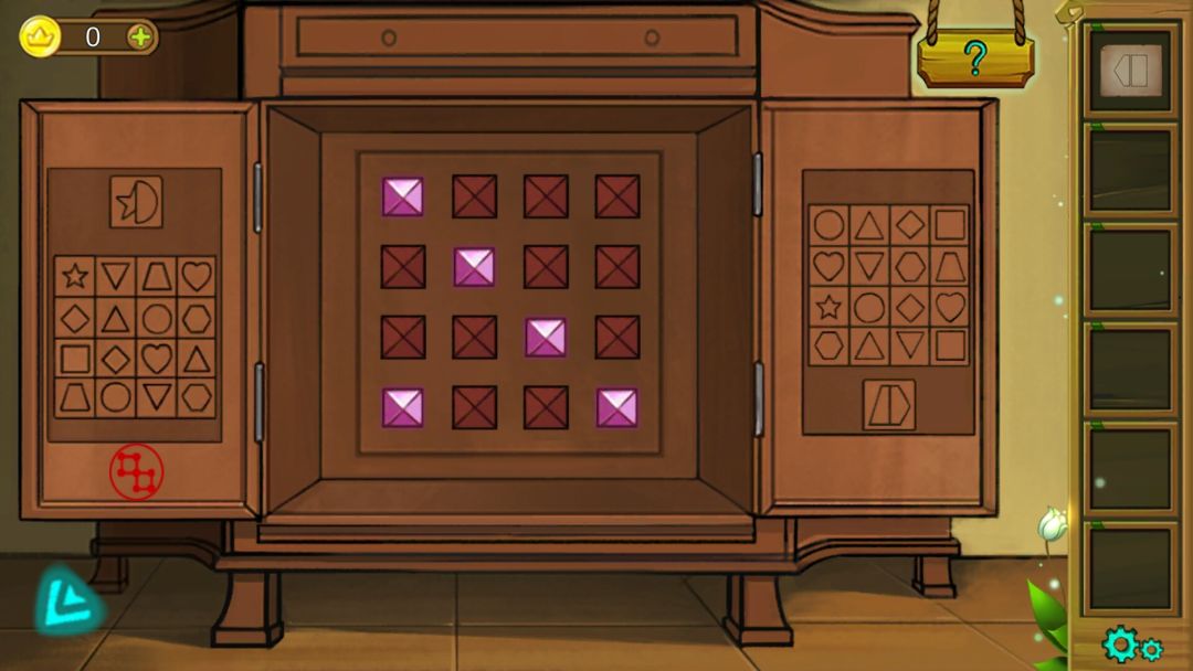 4.得到镜子提示后开箱子,箱子里得到蓝宝石和拼图,第四组图案为箱子秘密第二排第一个图形,如下图。