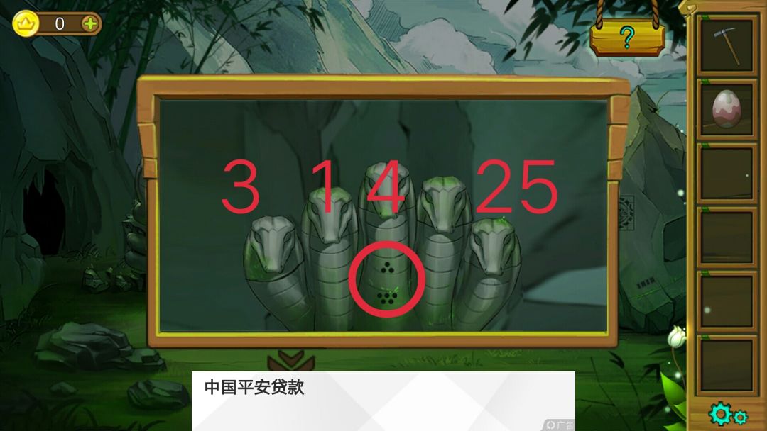 1.蛇头密码为依次点击第三个,第五个,第一个,第三个,第五个。(来自于巨石右下角的提示,CDEFG分别代表12345的位置顺序)