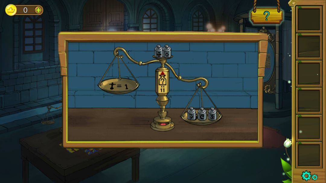 5.拼图给天平所在的桌子上,拼好图,得到砝码,砝码给天平,得到红宝石,如下图