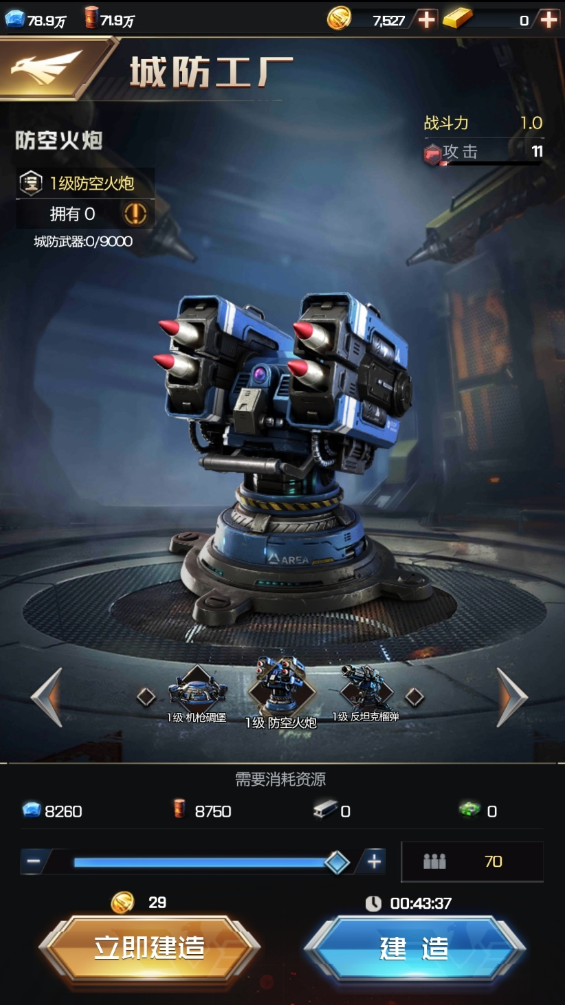 针对不同的兵种,城防武器分为三类,机枪碉堡优先对步兵造成伤害,防空火炮优先对空军造成伤害,反坦克榴弹优先对坦克造成伤害。