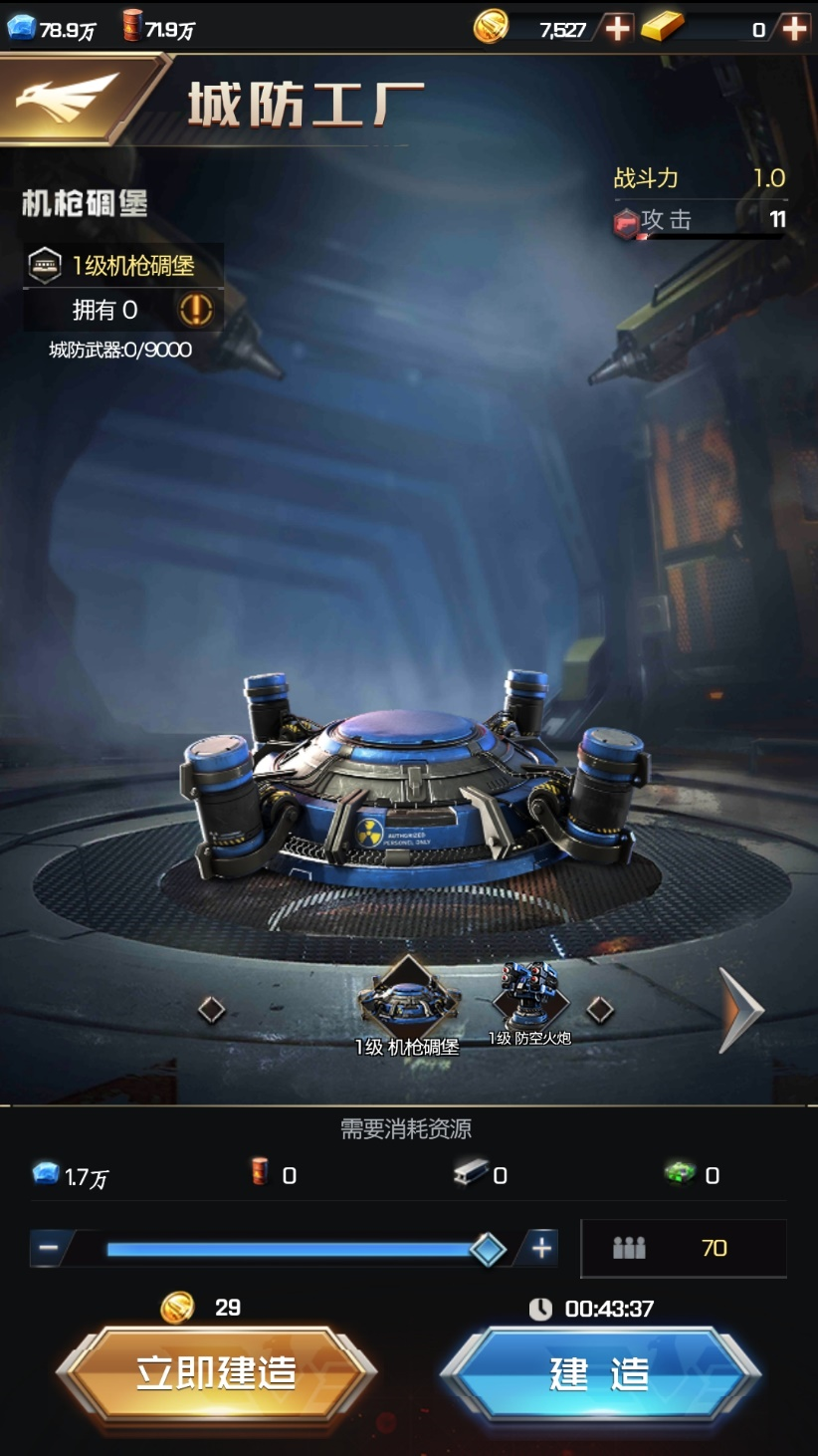 指挥官在防守时,除了相应的英雄和部队对抗外,城防武器也是一个重要的防守力量。城防工厂是建造城防武器的建筑,越高级的城防工厂能制造越高级的城防部队,能有效的提升基地防守能力。