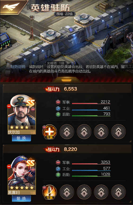 驻防英雄搭配: