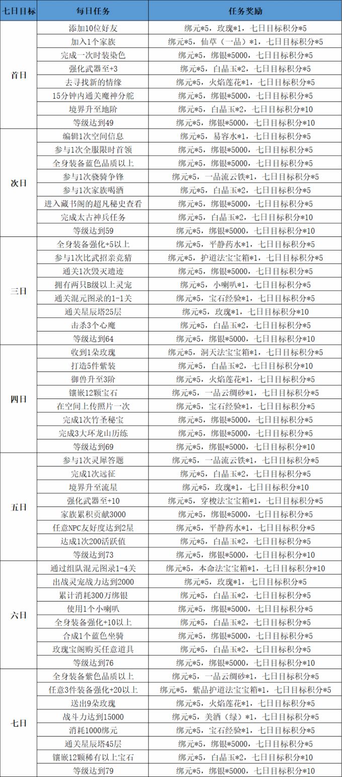《雪鹰领主》七日目标活动奖励一览