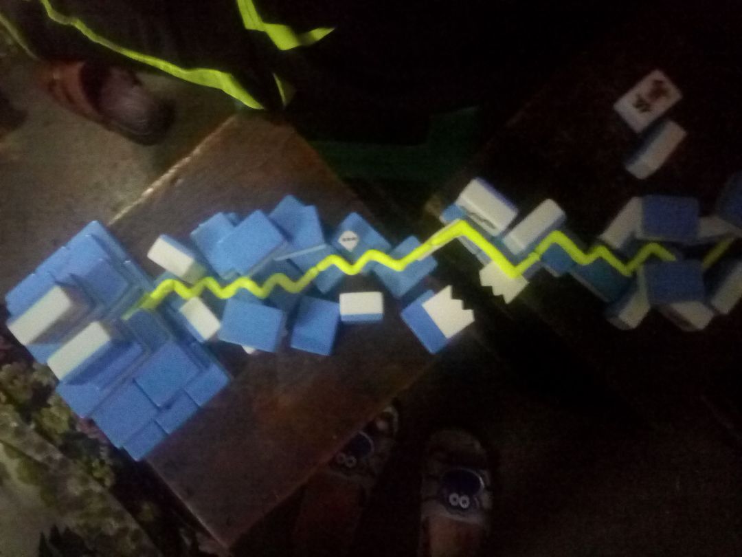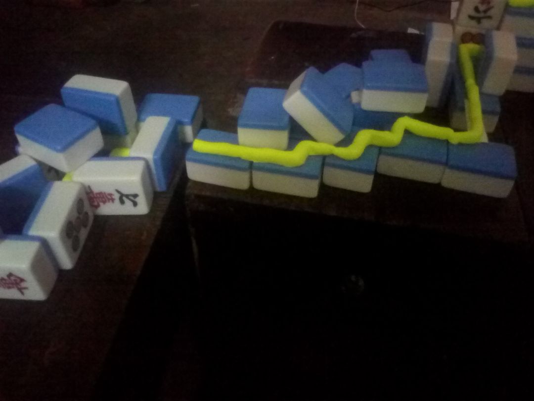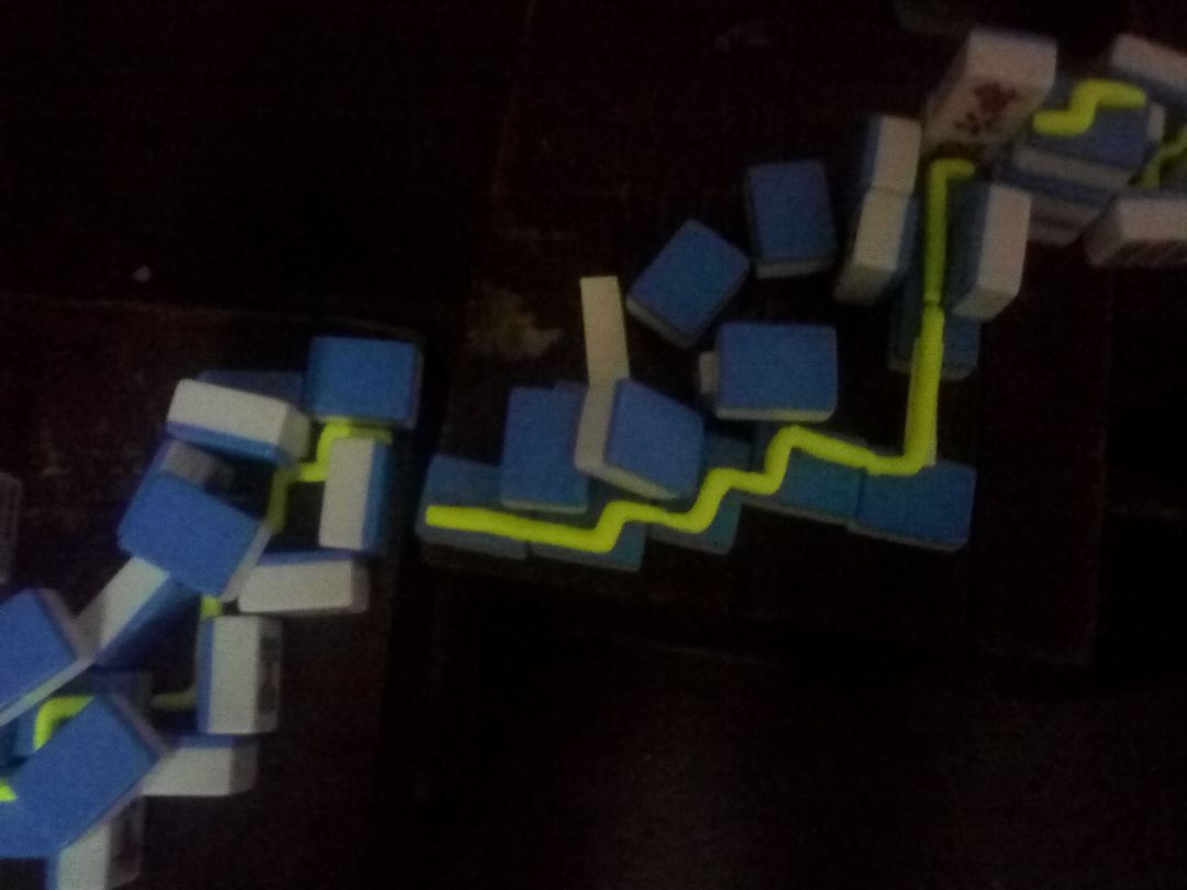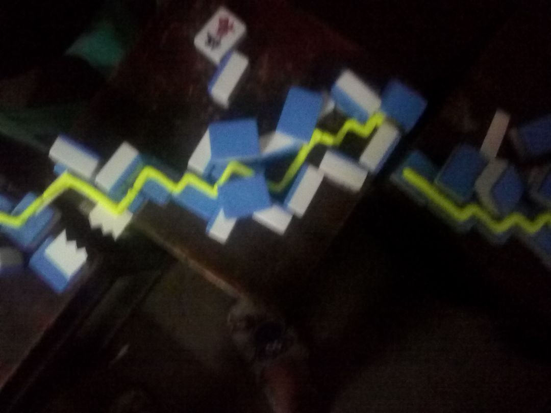 那些突出的麻将原本是平的,线一走到上面就升起。 音乐 逐渐增强