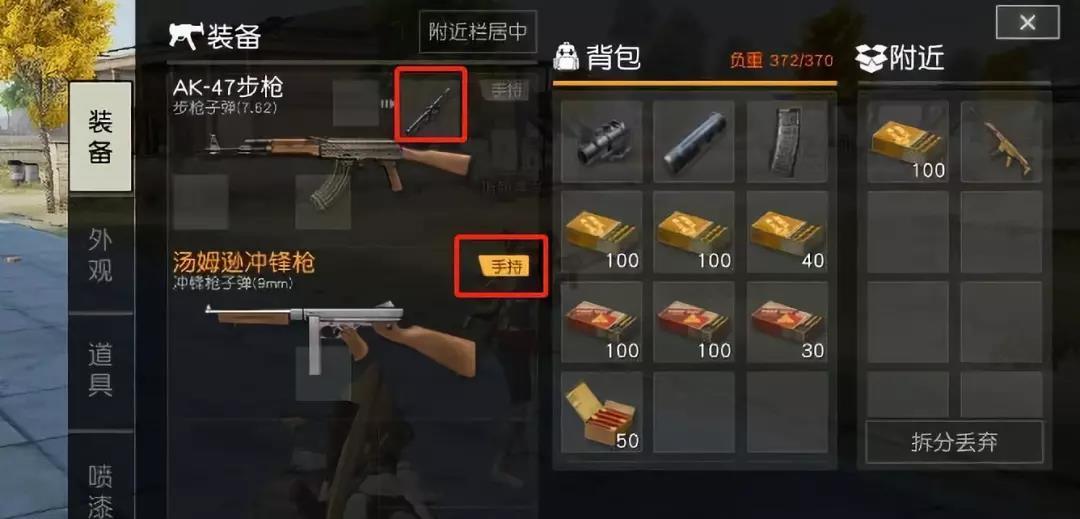 比如补漏王手持着汤姆逊冲锋枪,捡到了八倍镜以后,它会自动安装到非手持状态的AK-47步枪上,这样就能节省我们打开背包安装配件的时间啦!