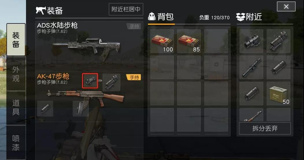 除此之外,更新过后当武器可以装备副瞄具时,拾取红点瞄准镜后会自动安装到副瞄具位置。这同样免除了我们重新打开背包,再安装副瞄具的繁琐动作。