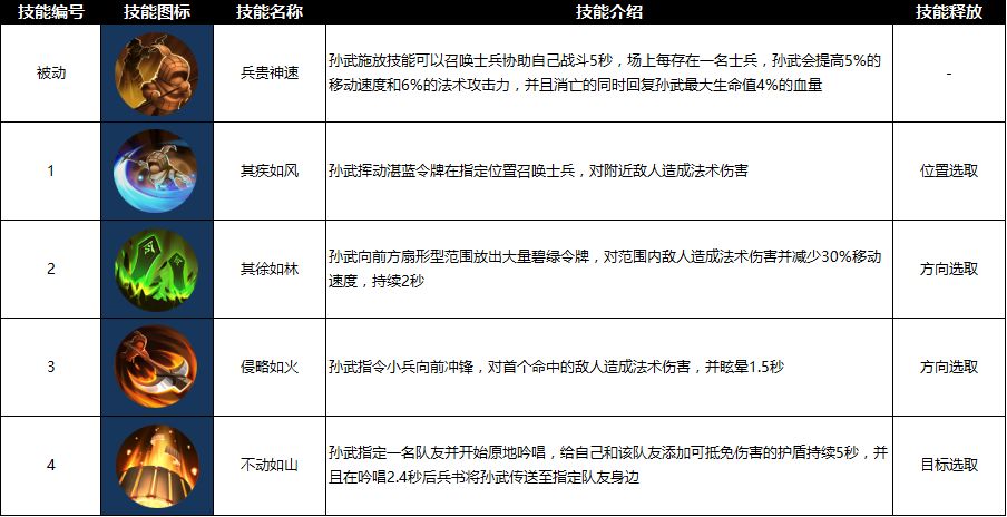 团战期:孙武站在中后排,对敌阵释放技能,并召唤小兵消耗敌人;合理利用技能提升小兵能力;使用4技能辅助队友后,要快速回到中后排。