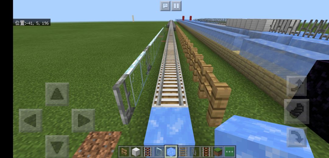 另外,从光速船得到的灵感:可以把光速船的加速段换成冰道。有利有弊吧。和光速船比占地小很多,加速快;但材料贵,且速度有限。和单纯的冰船比路上不用一直按着把控方向;但中途想启动就难,上文的铁轨还能随身带一块冰来解决,这个就不行。
