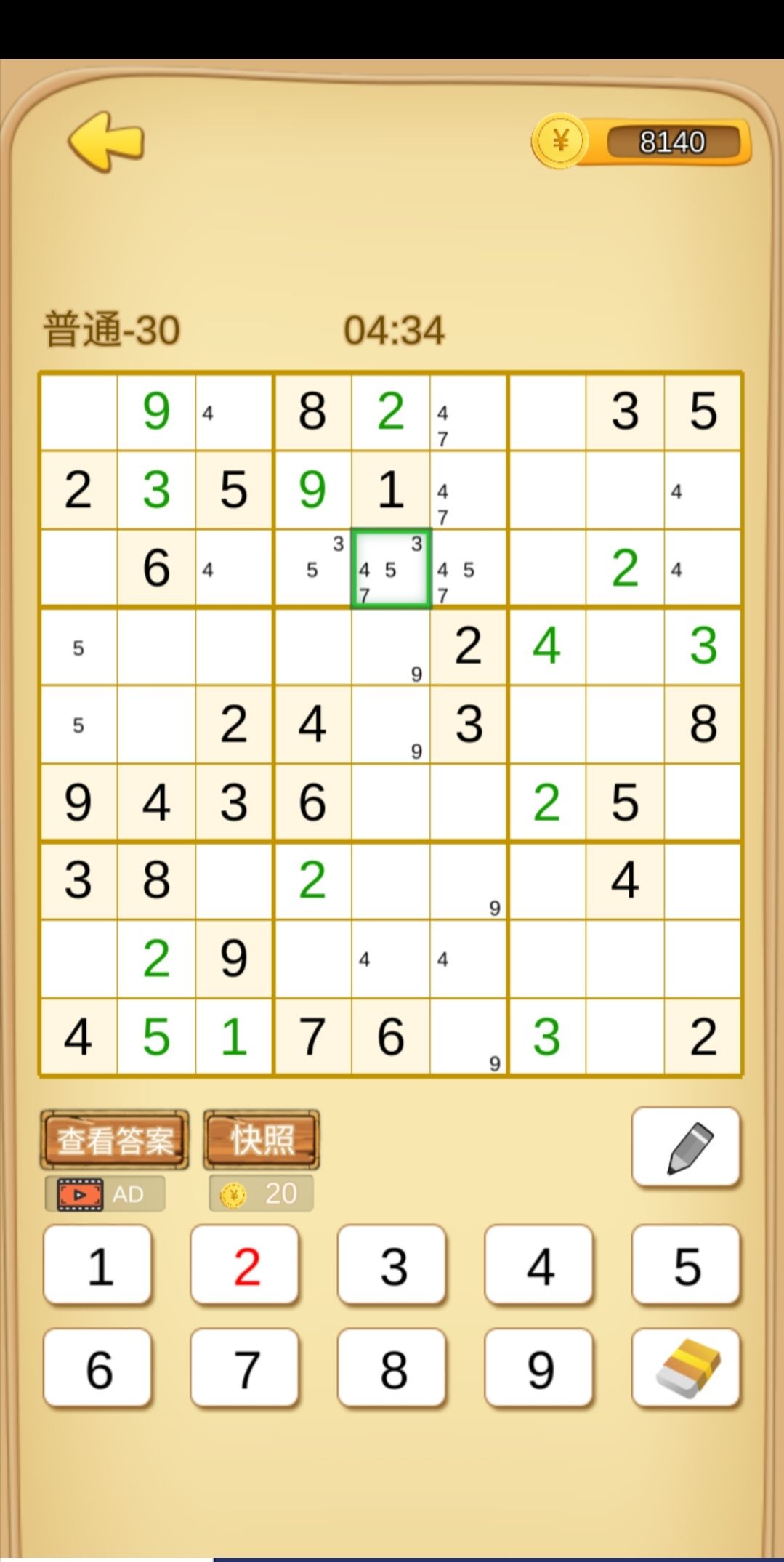 在数独的大多数情况下,填错数字是不会立刻发现的,有的时候甚至要到你填到最后几个格子才能发现。所以在这里奉劝各位新手,不到万不得已不要蒙!除非你做好了前功尽弃的准备!