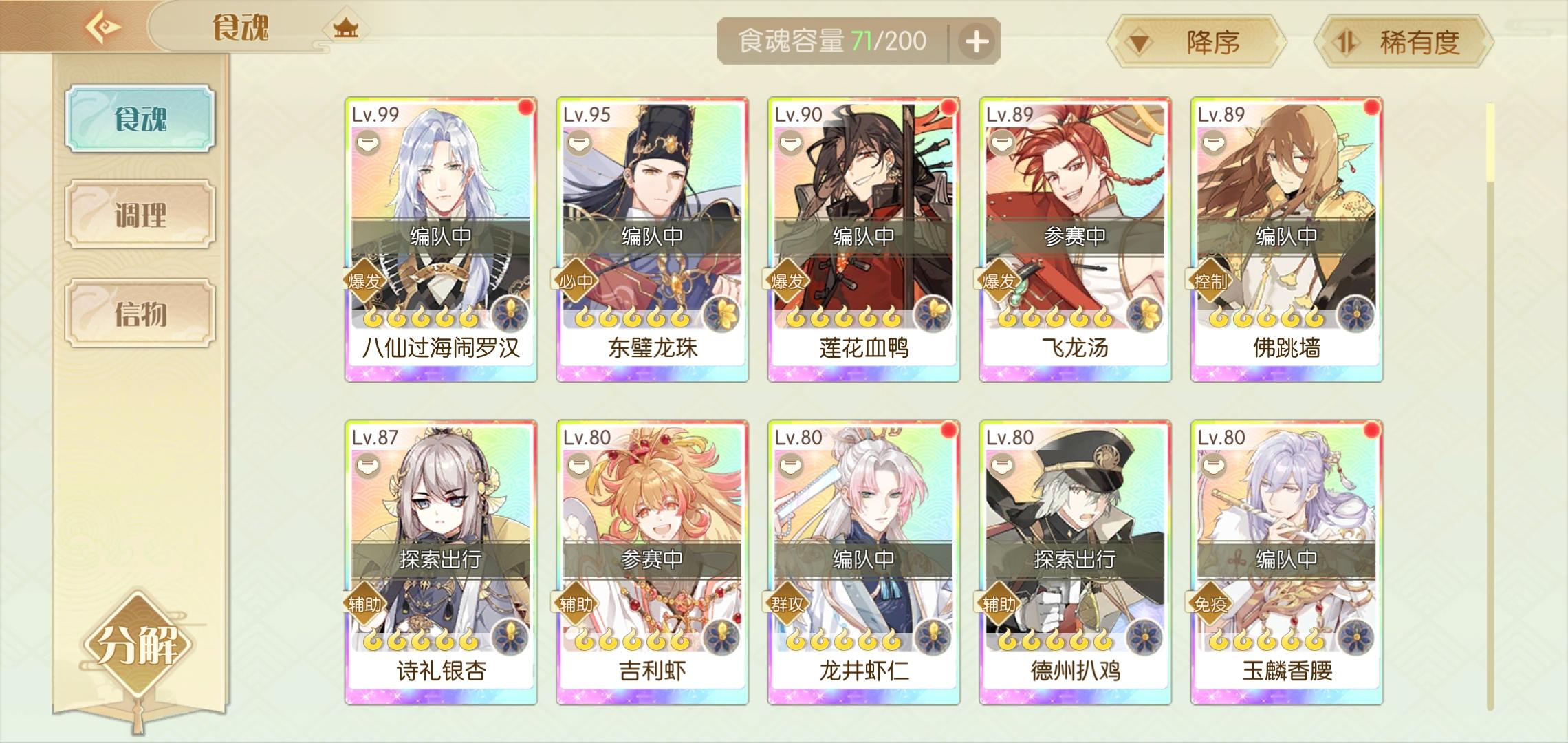 上食魂图(按稀有度排列)第一页,膳具图第一页,让大家猜猜你的氪数