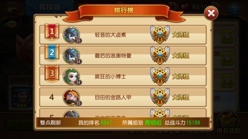 进入竞技场界面铺面而来的您发现您现在处于青铜组,游戏一共分了青铜,白银,黄金,白金,钻石,大师六个组别,玩家可以通过晋级赛进入到更高一层的组别,晋级赛的资格获取当然是您当前组别的前面几名了。挑战更高的名次,每天可以获得更多的奖励,包含稀有的竞技场币,在竞技场商店购买稀有的物品哦。