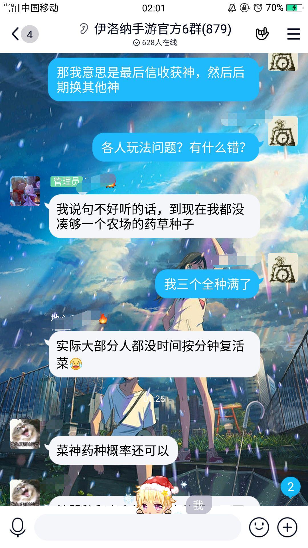 )我新手阶段拿完黑星后,中期最后信的收获神,然后建议这位萌新中期信收获神,于是我和这大佬就有点分歧(各人玩法不同,理智的讨论)