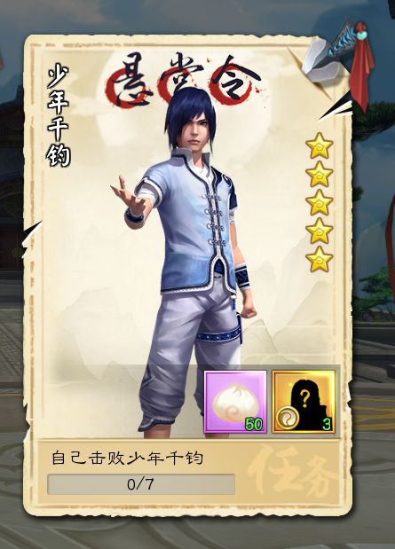 五星悬赏令对应着50体力和随机的太极侠岚碎片。