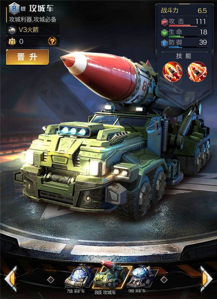 以上就是对攻城车的一些技巧分析。攻城车是一种高输出的兵种,同时也是后排兵种中最高血防的兵种,但它并不像主战坦克和突击步兵这些英雄一样,拥有倍伤等属性。指挥官们在出征的时候需要安排足够的扛伤害兵种,例如防御坦克,采矿车等等。