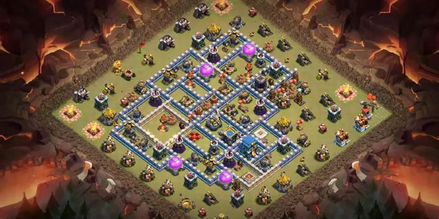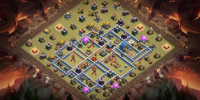 部落城堡的中置能增加引援难度,密集狭长的格子阵配合陷阱,在分流敌方部队的同时也能爆发出可观的伤害。电塔与陷阱边置,能给对手出其不意的打击。