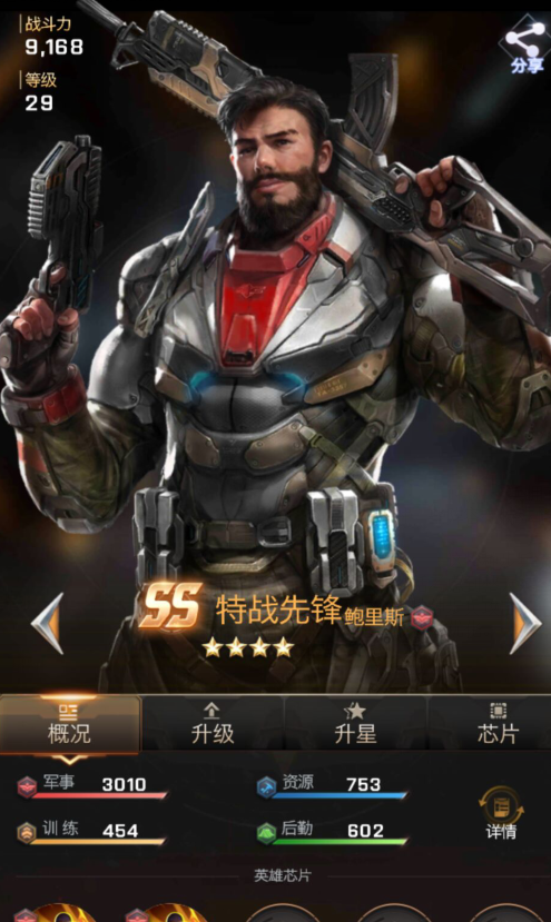 在英雄选择方面,鲍里斯依然是无可挑剔的第一选择,其可以提升特种步兵的攻击与防御,简单来说,如果鲍里斯属性优良的话,在打造集结专用特种步兵流的时候,就可以不用带加血技能了,可以换为其他更具倾略性的。而在第二武将方面,出于性价比考虑,个人较为推荐依娜,首先从碎片换取角度,S级的依娜相对来说简单很多,而且也较为容易提升星级,因此个人而言是强烈推荐的。