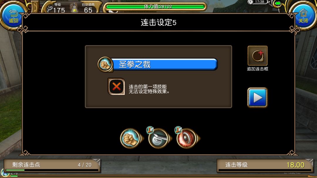 总计1点,一级圣拳做终结连击的断连使用,可以用一级星石代替。