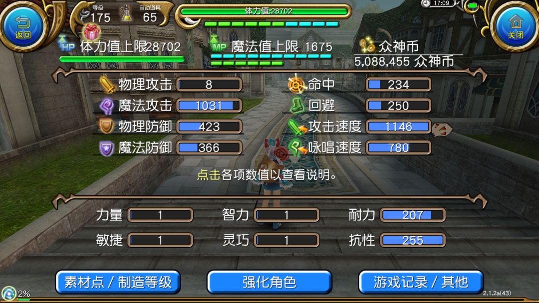 属性点选择优先点满抗性,国服版本255抗性折合75%异抗(至于到底是75还是76本攻略以75计算),其次副耐力,不点智力。在拥有5异抗时装的前提下配合蘑菇帽将达到百异抗,武器190精炼s也能拥有1000的面板配合一分钟无限终结拥有不逊色常规终结的输出。