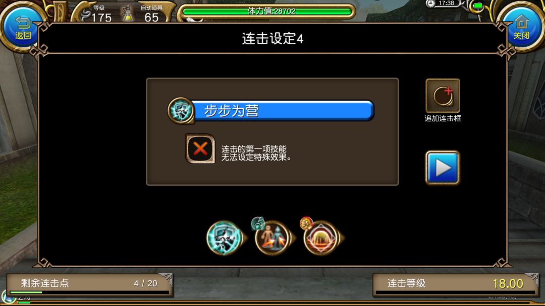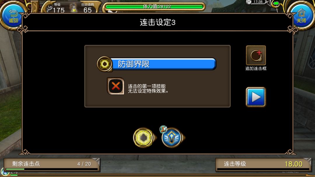 胆怯控制连击,由于王掉灵魂附加的100攻回,自身回蓝基本在每秒150左右,蓝量对此流派是冗余属性,打个比方,我可以在使用连击一炸蓝的时候,在终结没有读完之前,蓝量就被分身打满。所以连击选择一律不考虑省蓝,全部以速度优先,如果此连击没有打出控制效果请及时补控或者直接冲击波反覆。此连击释放速度约1.2秒。