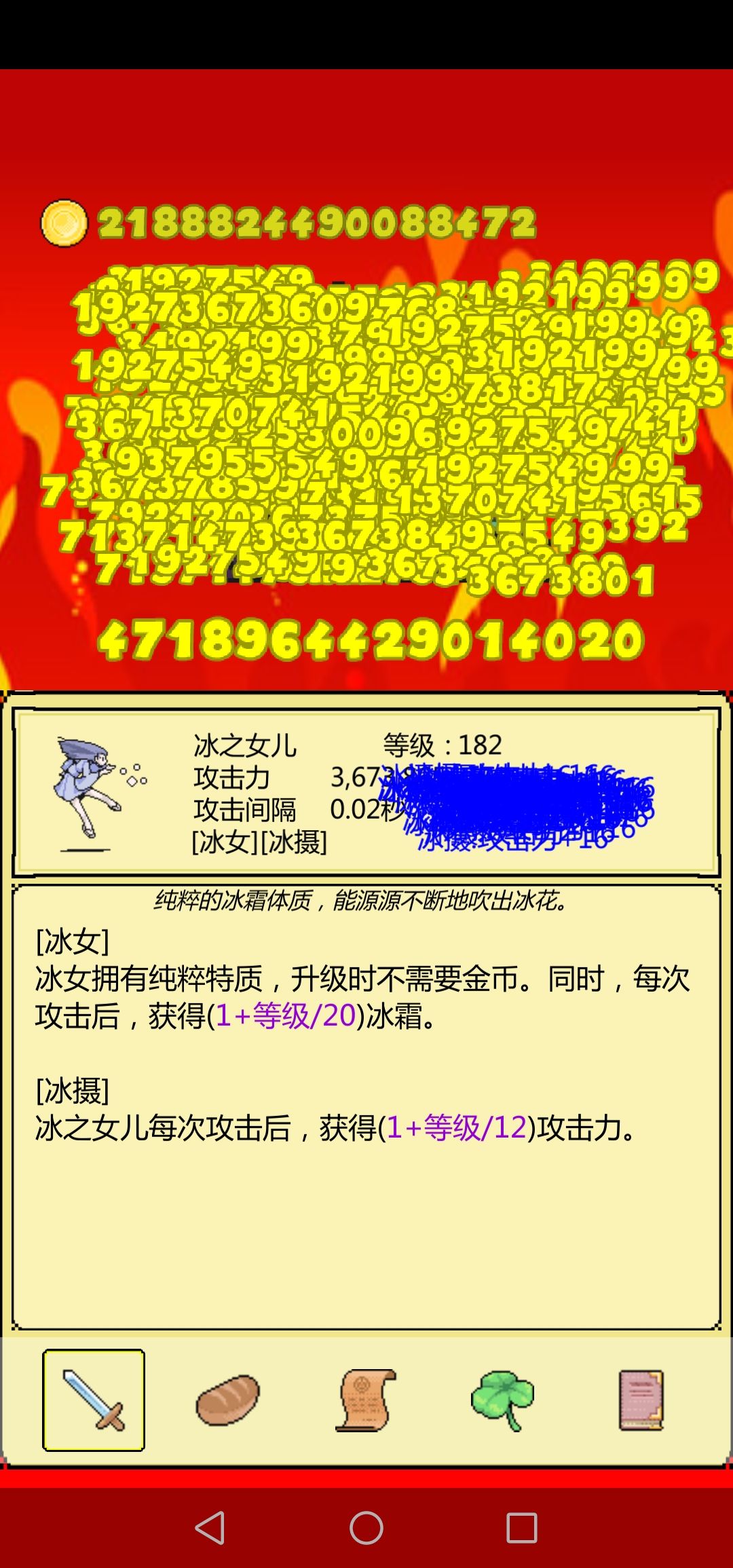 我发现冰女的攻击加成貌似有问题?0.02秒攻击一次,也就是一秒攻击50次。按一次加十六点攻击力计算,一天也该加6912万攻击力了。但是事实上四天过去了,我的冰女攻击力才仅仅几百万而已。截图看不大清楚,因为攻击数据太密集了,但是就是几百万的攻击力。