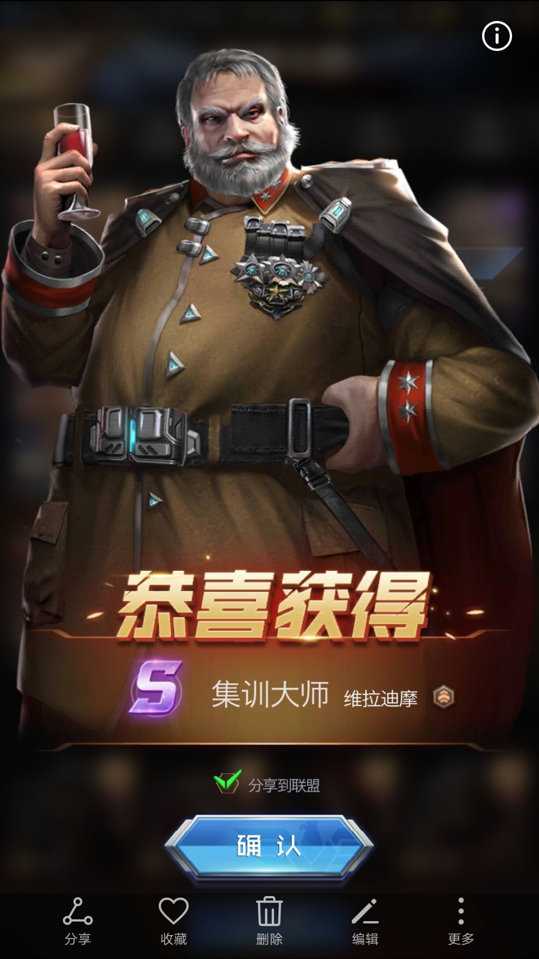 前期谁训练属性高,委任谁,要注意的是,训练期间是不能更换委任英雄的。中期推荐委任S级英雄维拉迪摩,他拥有很高的训练属性,并且自带技能“高级集训”,可以为提高百分比的训练速度加成,辅助属性越高效果越好(100点辅助增加0.90%的训练速度)。当然没有他就用别人,有1%总比没有强。维拉迪摩通过PVE活动攻击野外的叛军来获得叛军通讯器,以此来召唤叛军BOSS,与盟友击杀后可以获得宝箱,打开便有机会开出他的碎片,同时每天击杀一定数量的叛军也会有他的碎片奖励,具体情况以游戏内开启的活动为准。