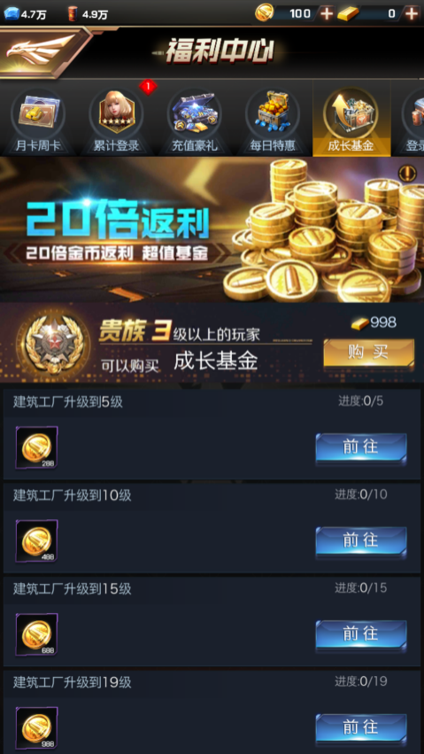 金币和金条是《红警OL手游》的重要物资,在各个方面都有使用,游戏初期有氪金活动获取,随着游戏的进程,会推出各类活动有机会获取。